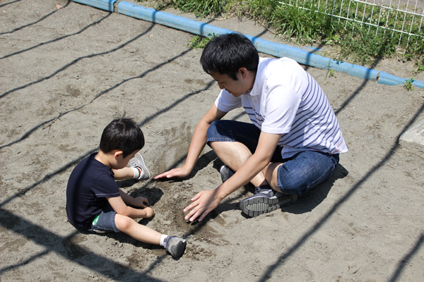 砂場であそんでいると、