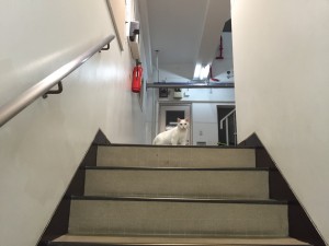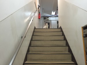 自宅のビルの階段を上ると。