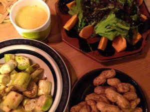 夜:落花生の塩茹で、すくなかぼちゃのポタージュ、