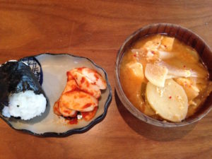 昼ごはんの鍋の残り物は、味噌と卵を落として
