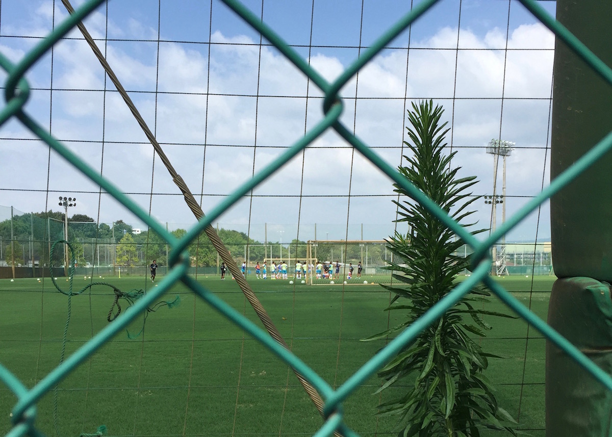 フェンスの向こうのフィールドで練習がはじまった。