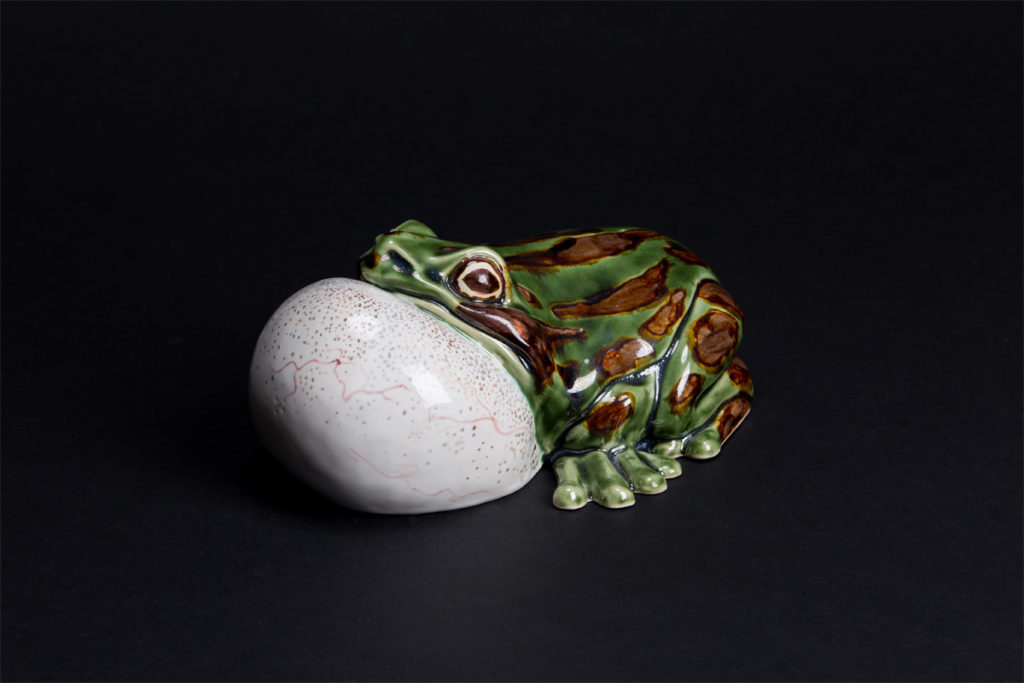このカエルは置物?