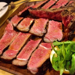 とびきり目を引くステーキが、テーブルに運ばれてきました。