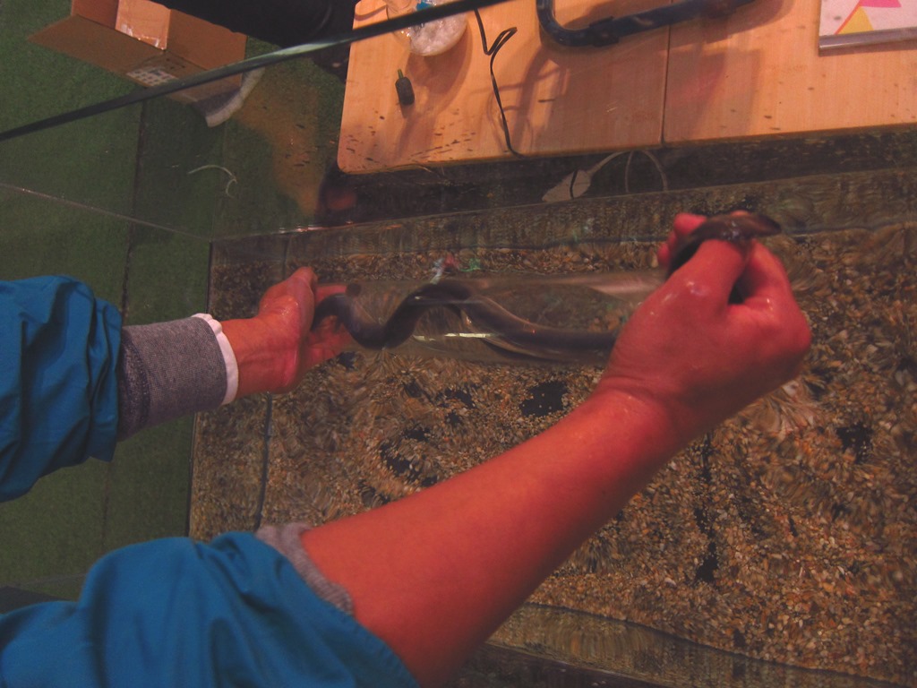 捕まえた魚は、こっちですぐ種類別に水槽に分けて