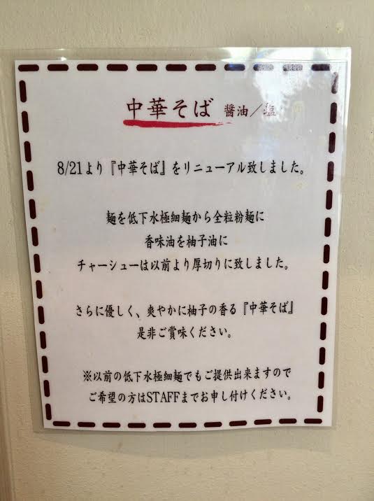 「中華そば」は最初は低加水の麺を使ってたんですけど、もうちょっと「やさしい感じ」にしたいな〜と思って、途中から全粒粉に変えたんですよ。