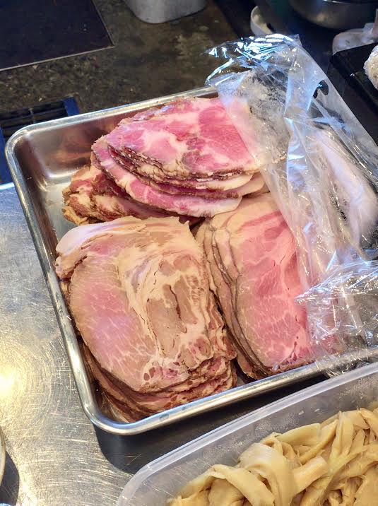 - レア状態で出てきて、スープに焼豚が浸ると火が通って・・・じわじわとお肉の色になっていく(笑)