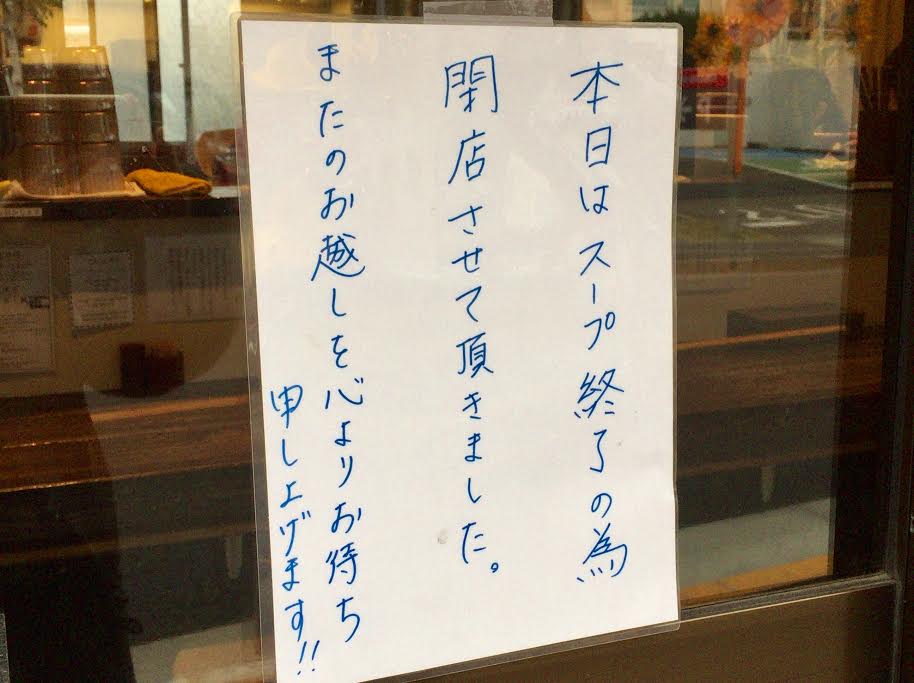 - 最初の3日間は「スープ終了」で、2時半より前に閉めてたと思います。