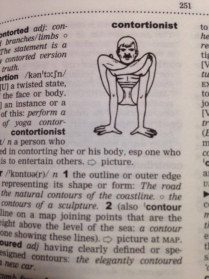 これはcontortionist。体の柔らかい曲芸師の意味である。