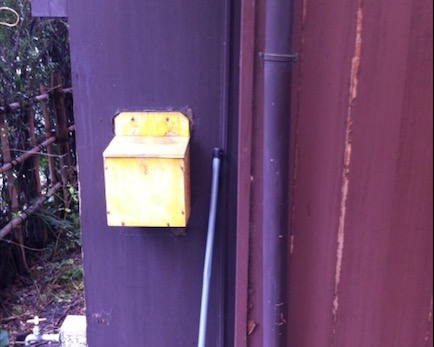 (牛乳ボックス。使用済みの牛乳瓶はキレイに洗って表に出すよう、