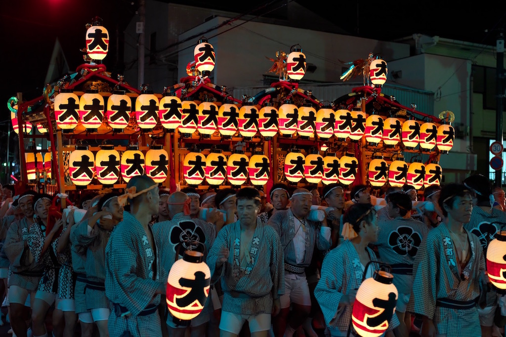 光輝く提灯が美しい神輿が練り歩くその様は、担ぎ手、住人の心に