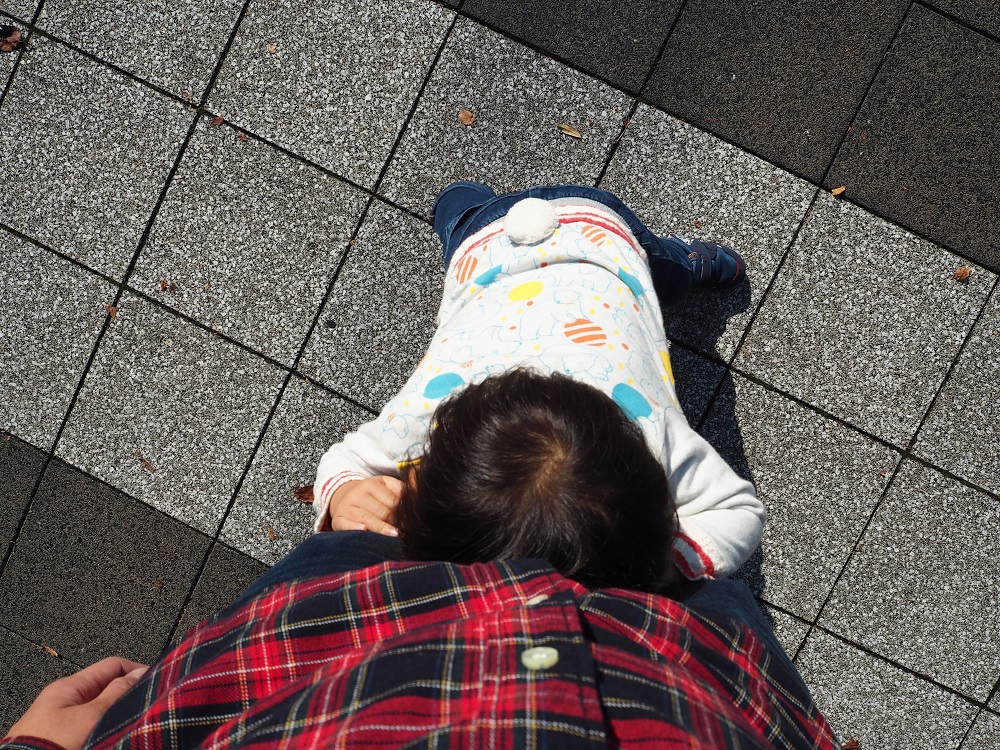 ぼくの足に隠れ、「おうちかえりたい」とささやくように言う。