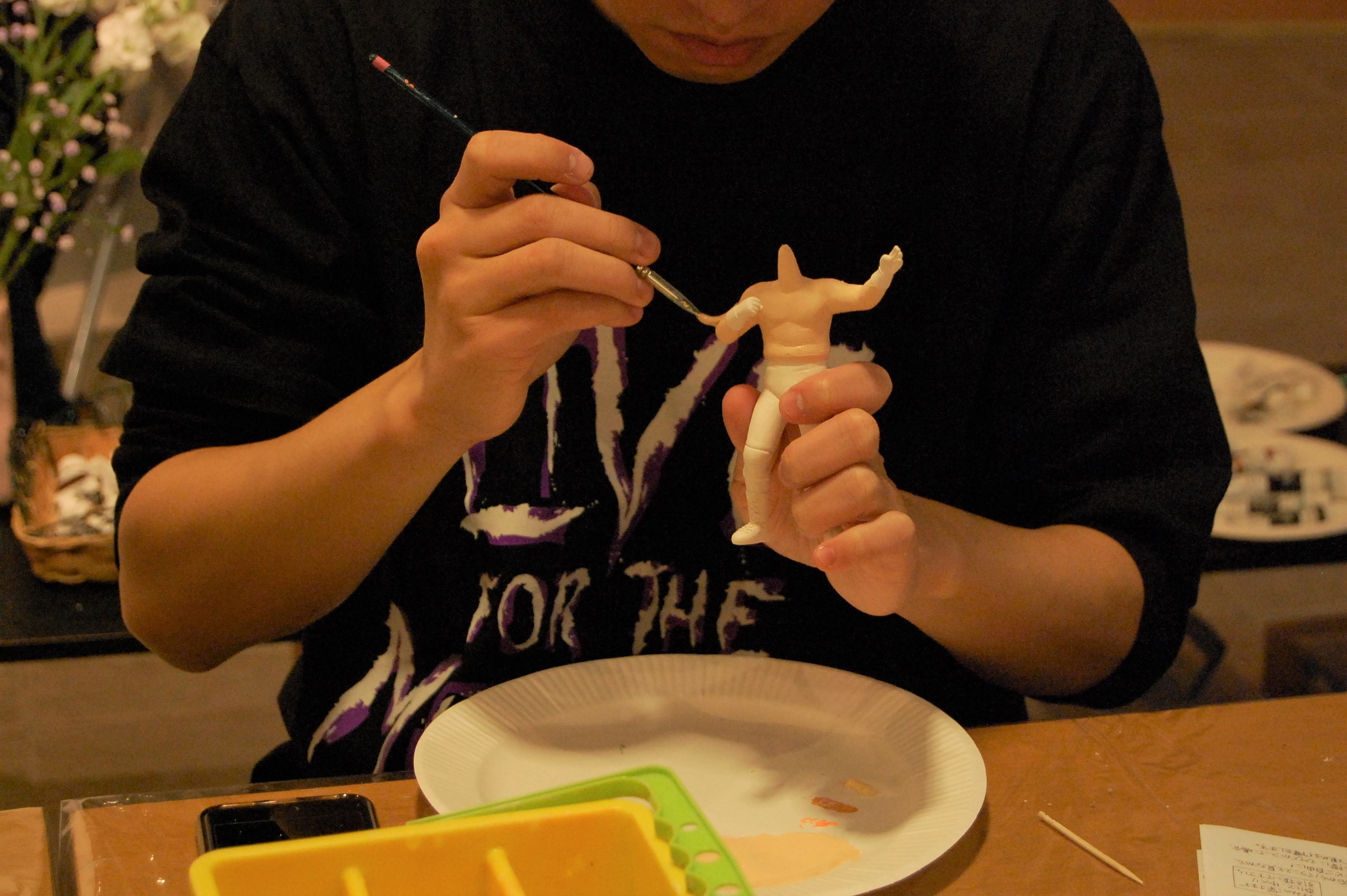 顔が乾くのを待つ間に、胴体部分に色を塗っていきます。