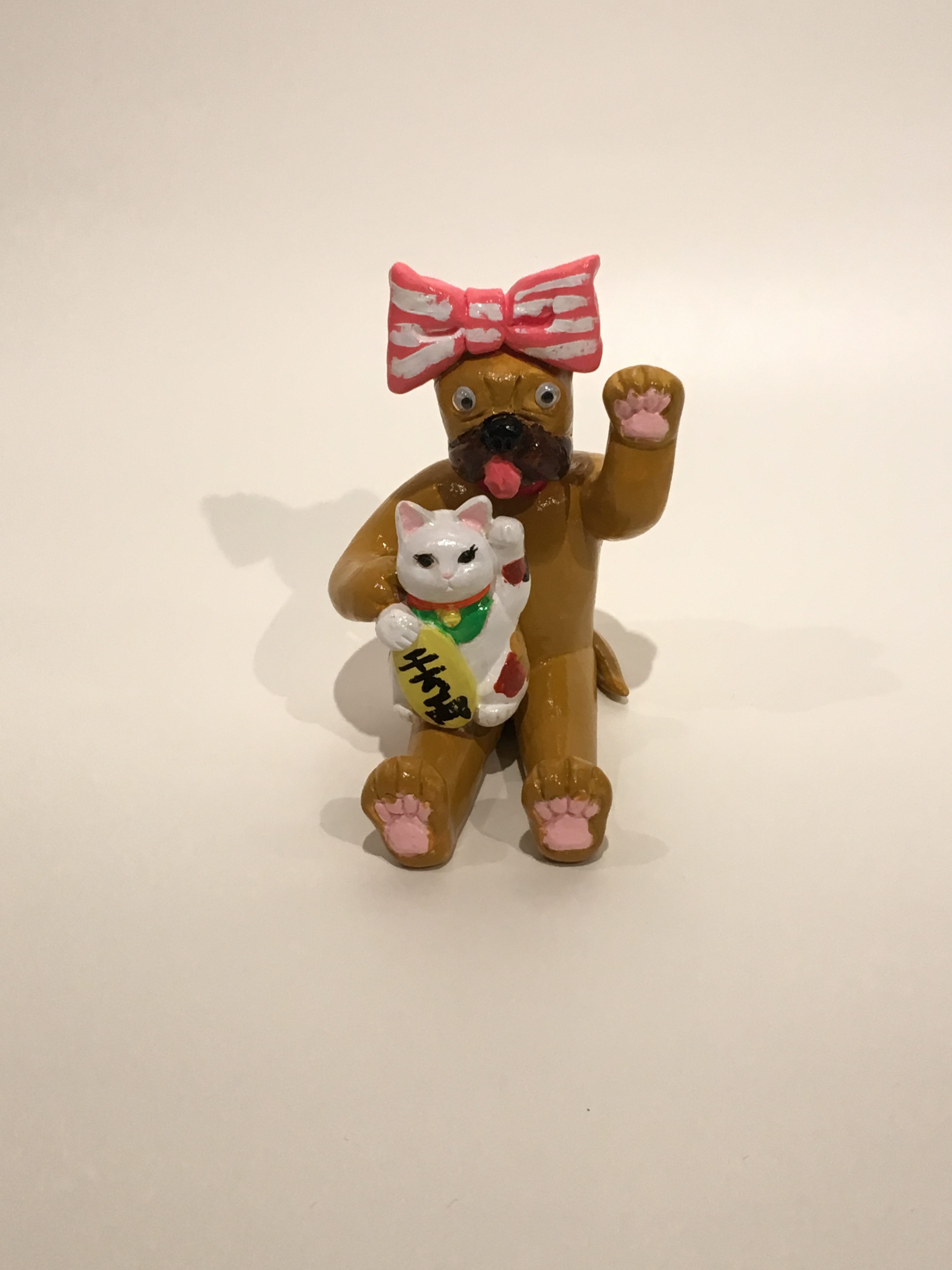 顔ができたら、しばらく乾燥機の上に置いて乾かします。