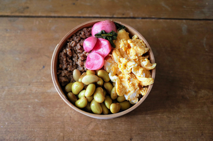 「肉野菜炒め」「卵焼き」「鶏そぼろ」の3つが