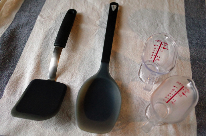 「シリコンヘラ」「シリコンスコップ」「軽量コップ」の3つです。