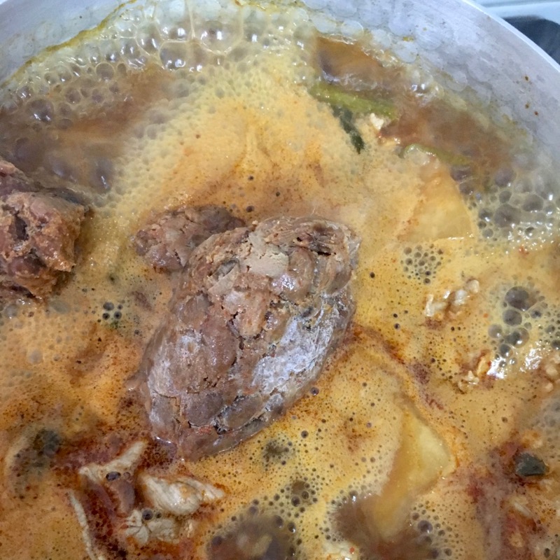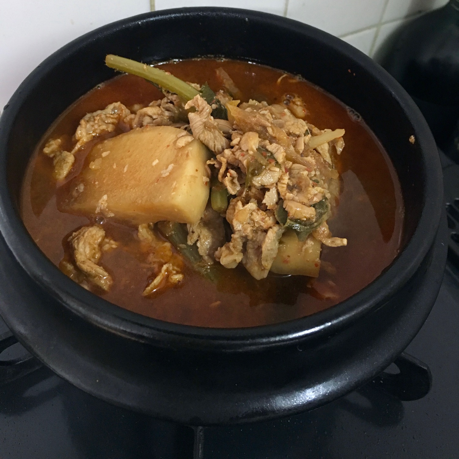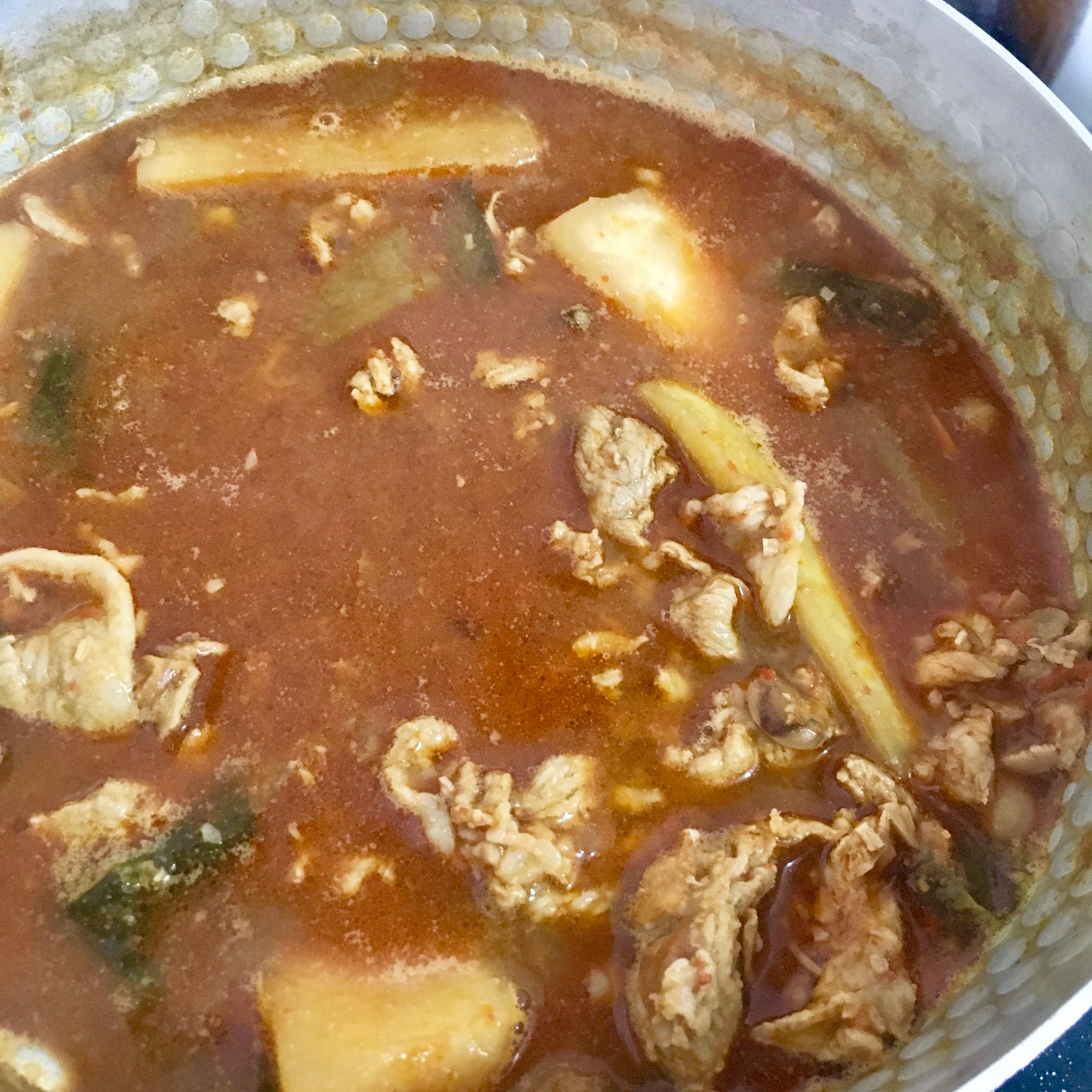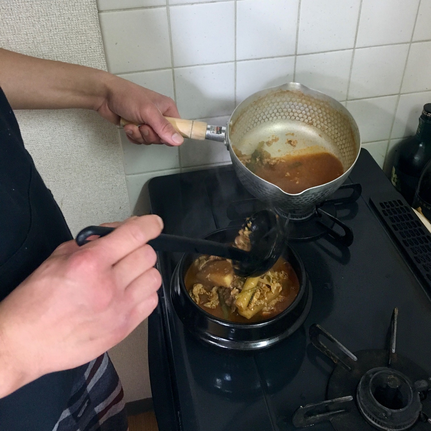 あとはこの韓国の陶器に移して、もう一度火にかけます。