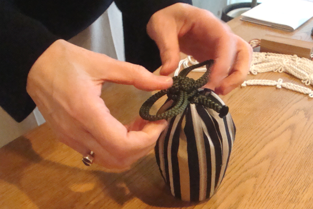 仕覆の紐は輪状になっていて、紐端がない丸い形ですから