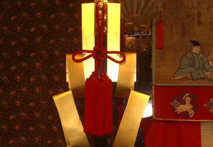 (写真中央の房のついている赤い紐があげまき結びです。)