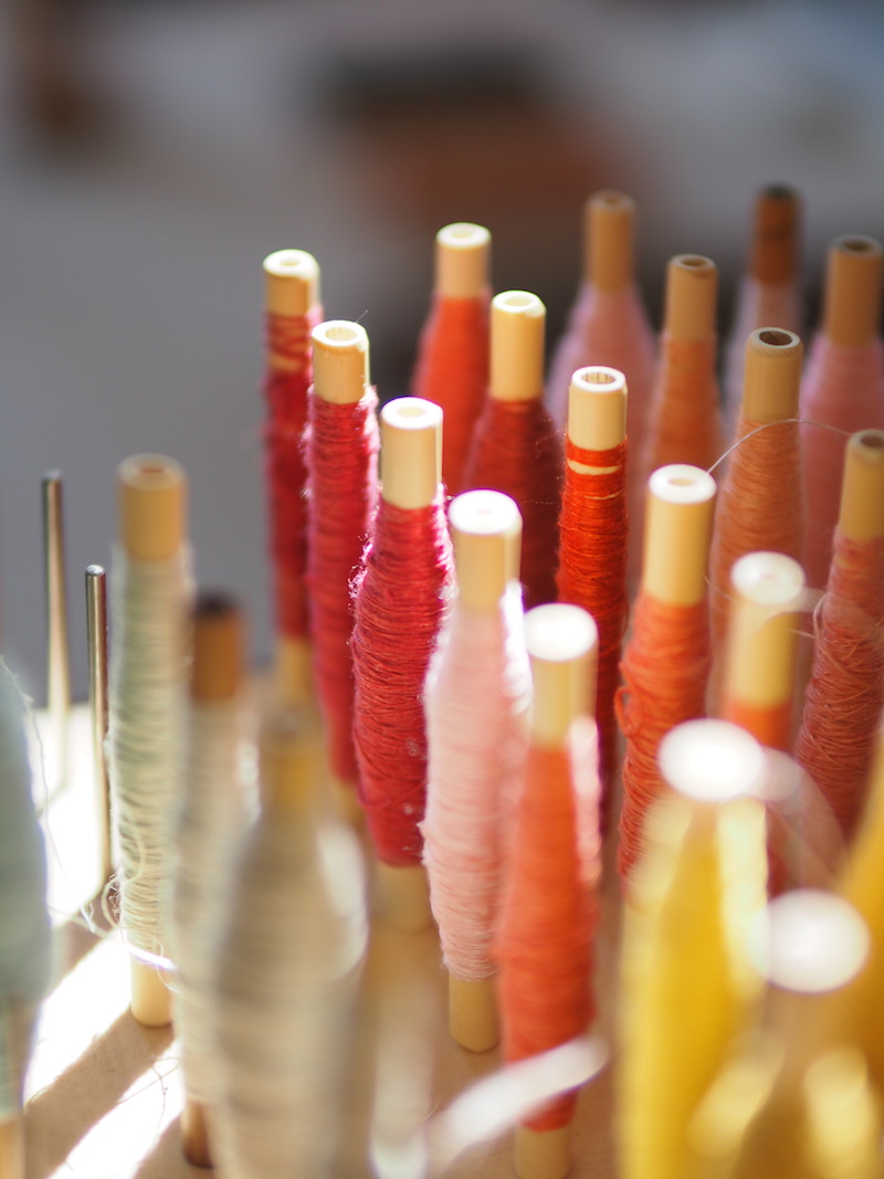 ワークショップでは一生懸命ひとりで織っているから