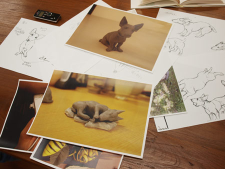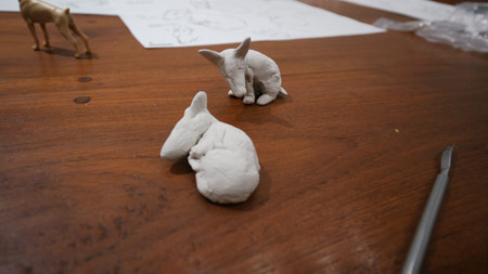 完成したブイヨンフィギュア(上「まってる」 下「ねてる」) |