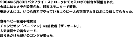 バードマンのフライングアタックを、間一髪かわしたオーレ。