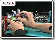 パンチを放つドクロンガーだが、ココナッツが ブルブルと起きあがり、怒りの逆水平! 場外まで吹っ飛んでいくドクロンガー。 そして、ここでフェイスオープン! 無敵の30秒スタート!! と、ここでセコンドのスザンヌがリングイン! ココナッツにつっかかり、ペースを乱される。 スザンヌが羽交い締めでココナッツを捕らて、 なんとドクロンガーがココナッツを無理矢理 フェイスクローズ!!!