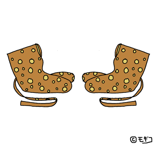 イラストでは まったく伝わらないと思いますが、 これ、茶色い革に大小のドットが ランダムに散らしてあるんですよ。 こういうの、トリコ・コムデギャルソンに あったような気がするんだよなあ。 |