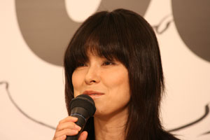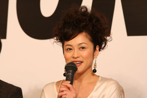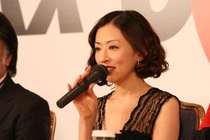 女盗賊を演じる、松雪泰子さん。 「参加させていただいて、うれしいです、 ありがとうございます。 あやしく演じていきたいと思います」 |