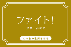 あ、中島みゆきが 「ファイト!」を歌う時代は 俺も頑張んなきゃみたいな気に。 |