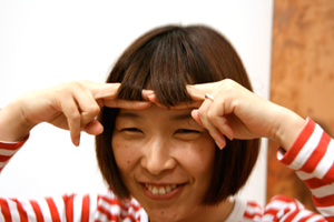 あたしは、もともとあこがれてて。 まず前髪を作って、 こうやるのにすごくあこがれてたんですよ。 こーいうふうにつながってるやつに。 ![]() |