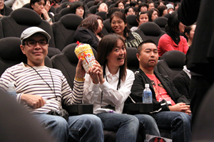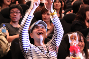 ま、はしゃぐ中年の写真はいいとして、 このあと、上映となったわけですよね。 |