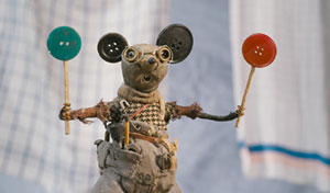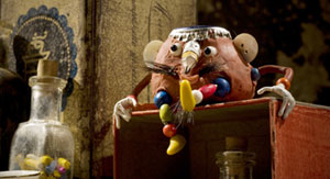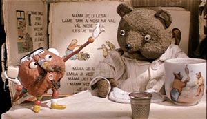 『屋根裏のポムネンカ』ですよ。 その人形劇じゃないです。 人形を使った動画ですけど、 ストップモーション・アニメーションといって ひとコマずつ、写真を撮るように撮影して、 それをつなげて映すと動いて見える。 そういう手法です。 |