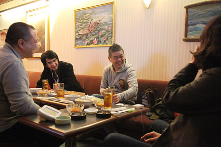 いい湯かげんの湯上りの人たちが