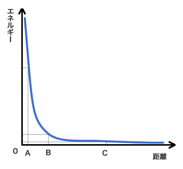 例えば、X線やγ(ガンマ)線などは エネルギーがとても大きい。 上の表でマイクロ波に比べるとけた違いに大きいことが よおおおくわかりますよね。 これらは分子構造を変えたりもするので 使用は十分な注意が必要! 注)レントゲン写真に使われるX線の被爆量は微量なので 心配することもないでしょう。 (参考:東京大学保健センター・ レントゲン検査における被曝についてQ&A) だからこそ、このγ線やX線の エネルギー大の性質を利用して 品種改良や、ガン治療に使うことができるのです。 そして紫外線。 これもそこそこエネルギーが大きい部類に入ります。 だからこそ紫外線を浴びると皮膚が「日焼け」するという 化学変化が起きるわけですね。 (そして研究員Aにとって憎い「シミ」というおまけも ‥‥) 紫外線もこのエネルギー大という性質を利用して 「殺菌」の道具にすることもできる、というわけ。 いま、「人体に悪いのでは?」と騒がれている電磁波は 携帯電話や電子レンジなどに使われている領域のこと。 でも、単にエネルギーの大きさを比較するだけならば 私たちの目に色を届ける 「可視光」よりもずっとずっと小さい。 ネット上に溢れる「電磁波情報」を見ているだけでも 内容が混乱していることがわかります。 中には 「携帯電話に使われる周波数は 紫外線に比べるとけた違いに大きい。 だから人体の細胞を傷つける」 なんて書いてあるものも!!逆です逆。 紫外線の周波数のほうがけた違いに大きいのっ。 とにかく、まずおさえておくべき電磁波についての大前提は 「エネルギーは波長に反比例する」 ということなんです。 さて、もうひとつの電磁波の特徴についてです。 ・電磁波のエネルギーの大きさは 距離の二乗に反比例する えーこれだけじゃさっぱりわかりません。 とりあえず、おおざっぱなグラフにしてみましょう。 電磁波が発生する源から距離と エネルギーの大きさの関係のグラフです。 ![]() A地点から3倍離れたB地点では、エネルギーは1/9に。 A地点から10倍離れたC地点、エネルギーは1/100に。 ‥‥というようになっています。 A地点とC地点、距離でいうとたいしたことありませんが エネルギー値でいうとかなり減少していますよね。 単に「距離に反比例して小さくなる」は 理解しやすいでしょう。 でも、数式に慣れた「理系」の人ならともかく 普通に生活しているぶんでは 意外と「二乗に反比例して小さくなる」は リアリティに乏しいかと思うんです。 「ちょっと距離が開くと、 『思った以上に』 エネルギーは小さくなるらしい」 くらいのイメージを持って頂けたら〜と思います。 そこで今回の結論です。