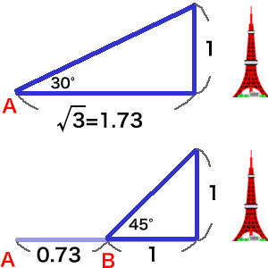 目の前に見える東京タワーに向かって 二人で歩いているときのこと。 「あの東京タワーは何メートルの高さだと思う?」 と彼に聞かれました。 そんなこと急に言われても よくわからないから適当に答えた研究員A。 そしたら「それは論理的に間違ってる」との答えが。 ろ、論理的に間違ってるって‥‥。 すると彼は ある地点(A)からある地点(B)までに歩く間に 歩数を数えてそのAB間の距離を概算し さらにそのA地点・B地点から見上げた 東京タワーの角度の値から 東京タワーの高さを計算して出してくれたのでした。