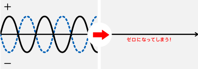 光は波の性質があるので そのパワーはプラスになったり マイナスになったりと変化します。 ただ足しただけではエネルギーがばらばらで 図3のようになってしまいます。 波長も位相もばらばらな光を足し算すると結果的に 全体としては光の位相もパワー(振幅といいます)も 不規則に変化します。 でも、位相が揃ったコヒーレントな光である レーザー光であればばどうでしょう? 足したら効率よくパワーが増して こんなにエネルギーの強い光になるのです (ちなみに、光の上下の幅=振幅が 光のエネルギーの大きさを表わします)。 そしてレーザー光は人工的に制御して操ることができる! レーザーはトランジスタと並んで 20世紀最大の発明ともいわれています。 医療の分野だけではなく CDやDVDの読み取りにも使われていますし バーコードスキャナにも。 プレゼンテーション用のレーザーポインタを お持ちの方も少なくないかも。 ちなみに、所長(夫)と研究員Aの結婚式の時 私のいた大学の研究室から頂いた電報に 「ふたりの愛はコヒーレント」 なーんて書かれていて、新郎新婦は大爆笑でした。 ふたりともレーザーに関係する研究をしていたもので。 でも‥‥ですよ。いくら「波長のあったふたり」でも コヒーレントでなくなってしまったら どうなってしまうでしょう? 例えば位相がこんな関係になってしまったら パワーを強め合うどころかゼロになってしまうのです。