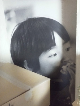 畳1畳ほどのパネルになった、幼稚園での自分の写真です。