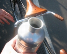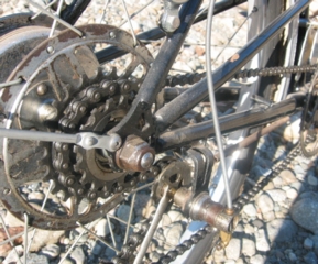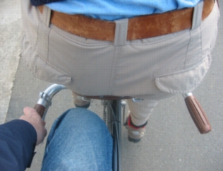 古くておしゃれな自転車のお話を しばらく僕はうかがいました。 やがて、川原風で体が冷えた僕らは 来た道を戻ることに。 なんと! 帰りの下り坂は 山下が前を運転させてもらいました!