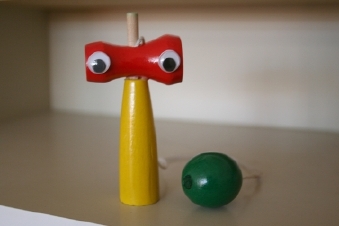 そうですね、気が向いたら。 やっぱり子どもたちは遊ぶのがお仕事ですから。 お教室にはもちろん、 なつかしいオモチャがたくさんありました。 僕はケン玉に挑戦してみたりして‥‥。