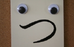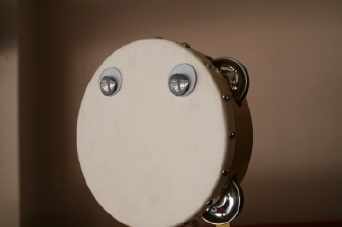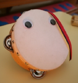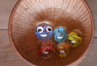 粘土遊びの道具入れに動眼。