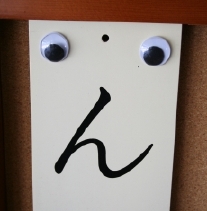 と、ここで見慣れないものを発見。 「ひらがなのおべんきょうボード」 とでもいいますか。 とにかくひとことお願いいたしましょう。 代表で「あ行」のかたどうぞ。
