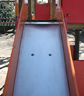 タンバリンなどは瞳をうるませております。 そんな気持ちを代表して、 「ひらがなのおべんきょうボード」から 春休み中のおともだちにメッセージを。 どうぞ‥‥。 それから僕は、 うららかな春の光が降りそそぐ みどり豊かな園庭へと出てみました。 素朴でなつかしい遊具がございます。