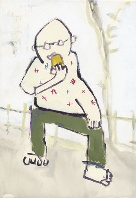 井の頭公園でアクセサリーを売るおじさん、休憩中。