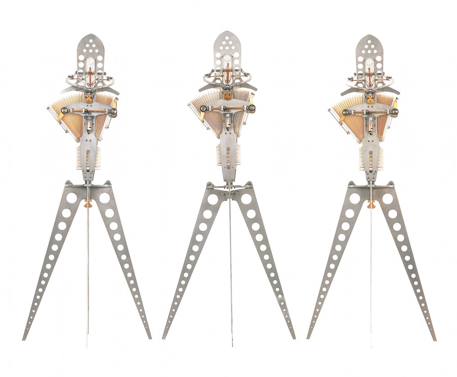 水槽内で回転するレーザーを魚が遮ると、その真下のノッカーが動く。