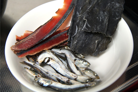 森川さんが用意したのは、厚削りのかつおぶし、昆布、煮干し。