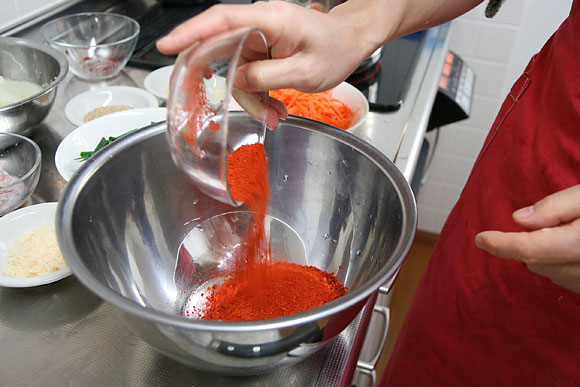 まず唐辛子をボウルに。