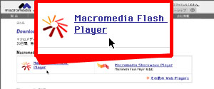 まずは、FLASHのある、 マクロメディのWEBサイトにいきます。 アドレスは↓ http://www.macromedia.com/jp/downloads/