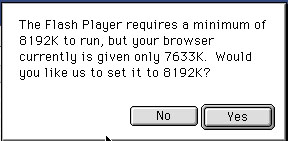 Flashは、メモリを8192K最低でもつかうので、 いまわりあてられているメモリ数よりも増やすかどうかの 選択をします。 増やそうとおもったら、[Yes]のほうです。