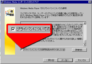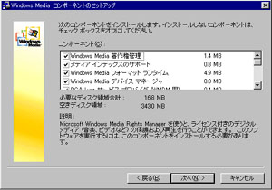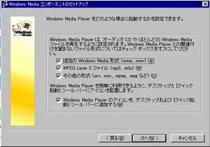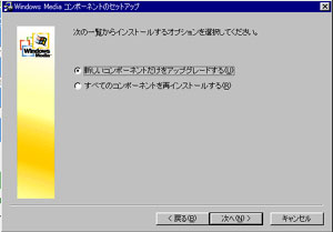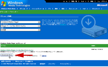 すでにWindows Media Playerをおもちで、 バージョンアップしたいひとは、 上のボタンを。 インストールがしたいひとは、 下のボタンをクリックします。 「次へ」
