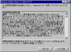 使用にあたって、契約書などがありますので、 よんでください。 同意できたら、「はい」をクリックです。 「いいえ」をクリックすると、 セットアップはできません。